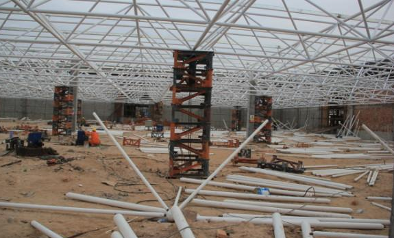 5)总体晋职法:此步履多使用在周边支护以及有多点支护的网架结构,可采取平板升降机、液压千斤顶等小型机具作业深州施工;